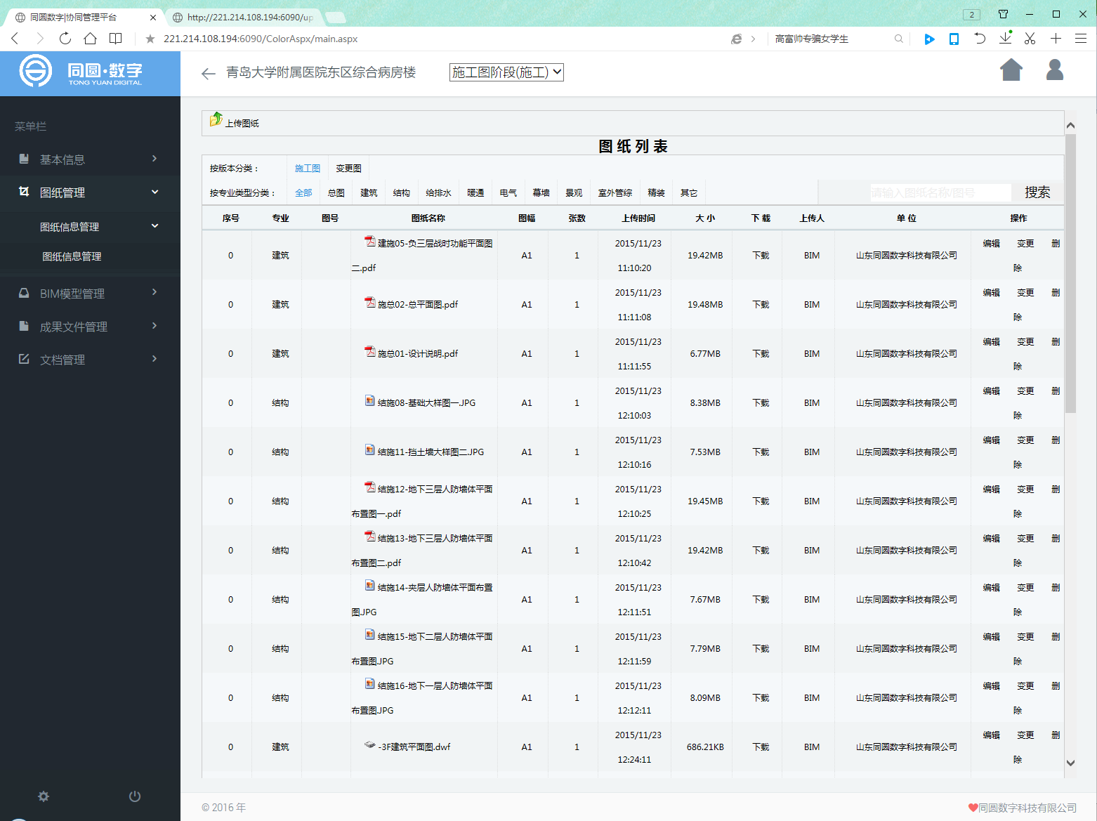 设置了设计图档管理板块,按类别、时间、单位进行有序的图档管理;对过程资料、审批资料等设置专项文档库。