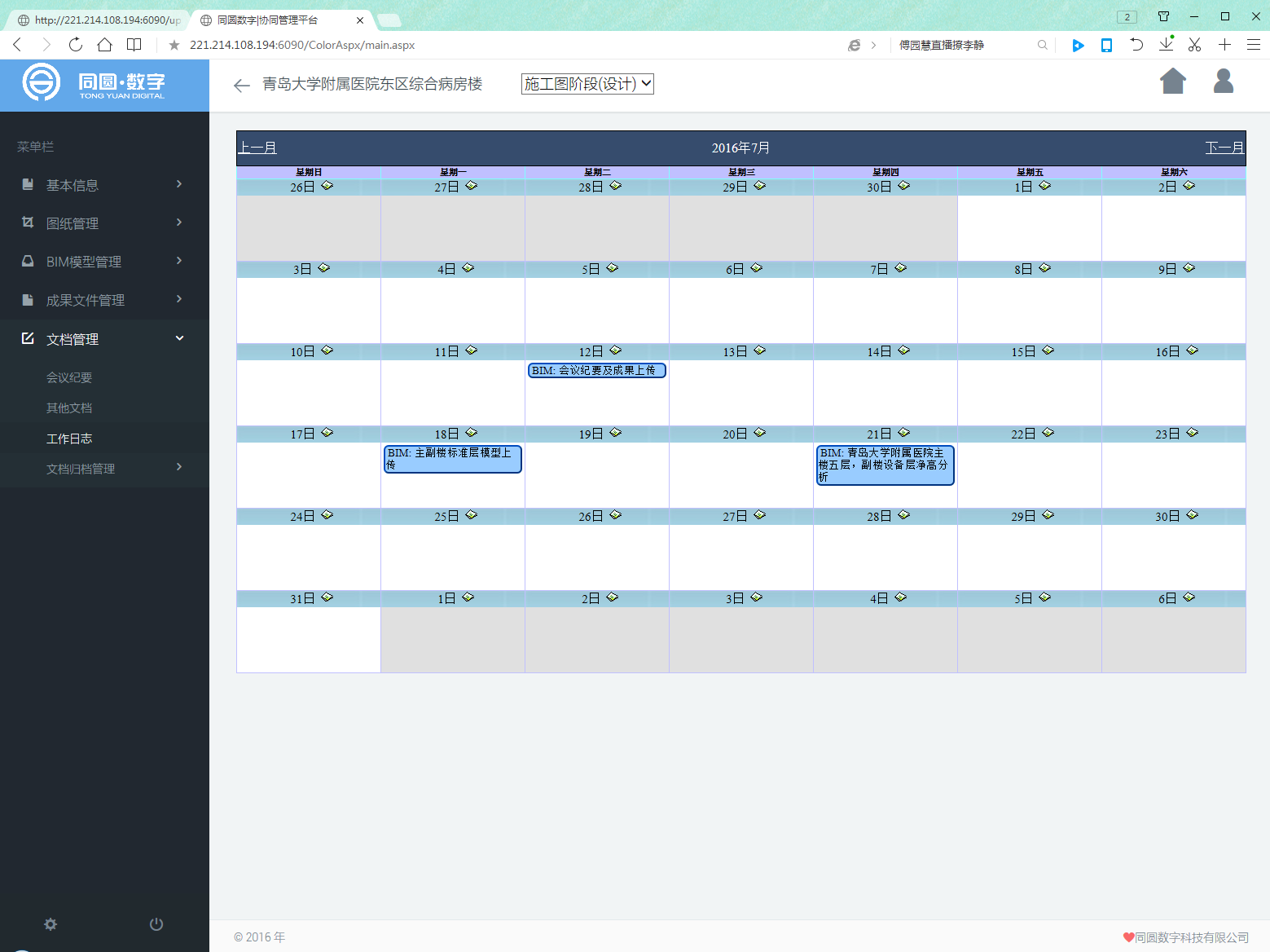 提供了协同工作日志与内部即时通讯功能;同时增加BIM模型在线工作功能,可对模型进行预览、批阅、文档关联等操作。