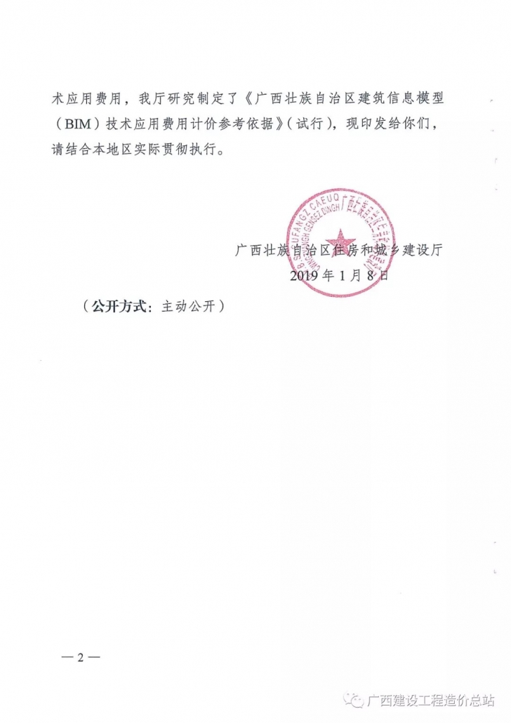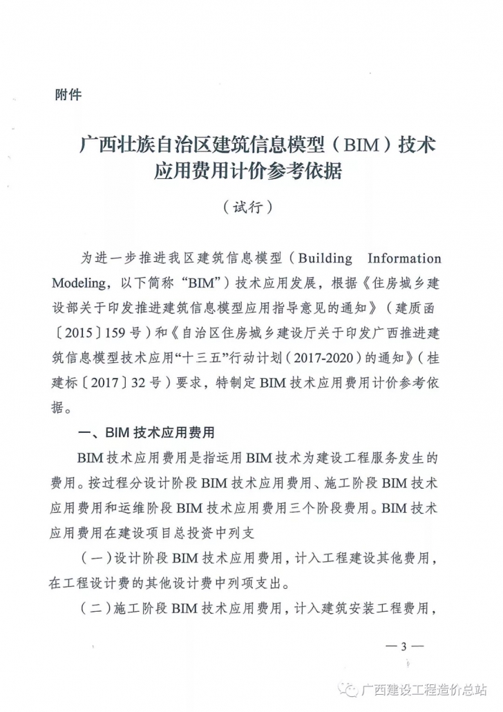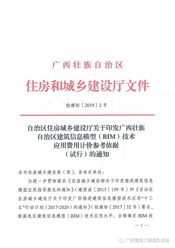 桂建标[2019]2号:广西住建厅关印发广西BIM技术应用费用计价参考依据(试行)的通知