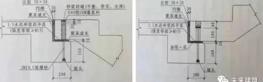 预制楼梯预留孔灌浆固定后,在预制楼梯板与休息平台连接部位缝隙采用聚苯填充,缝隙最后用PE棒封堵并注胶密封。(图纸设计有要求时,按图纸要求施工。)